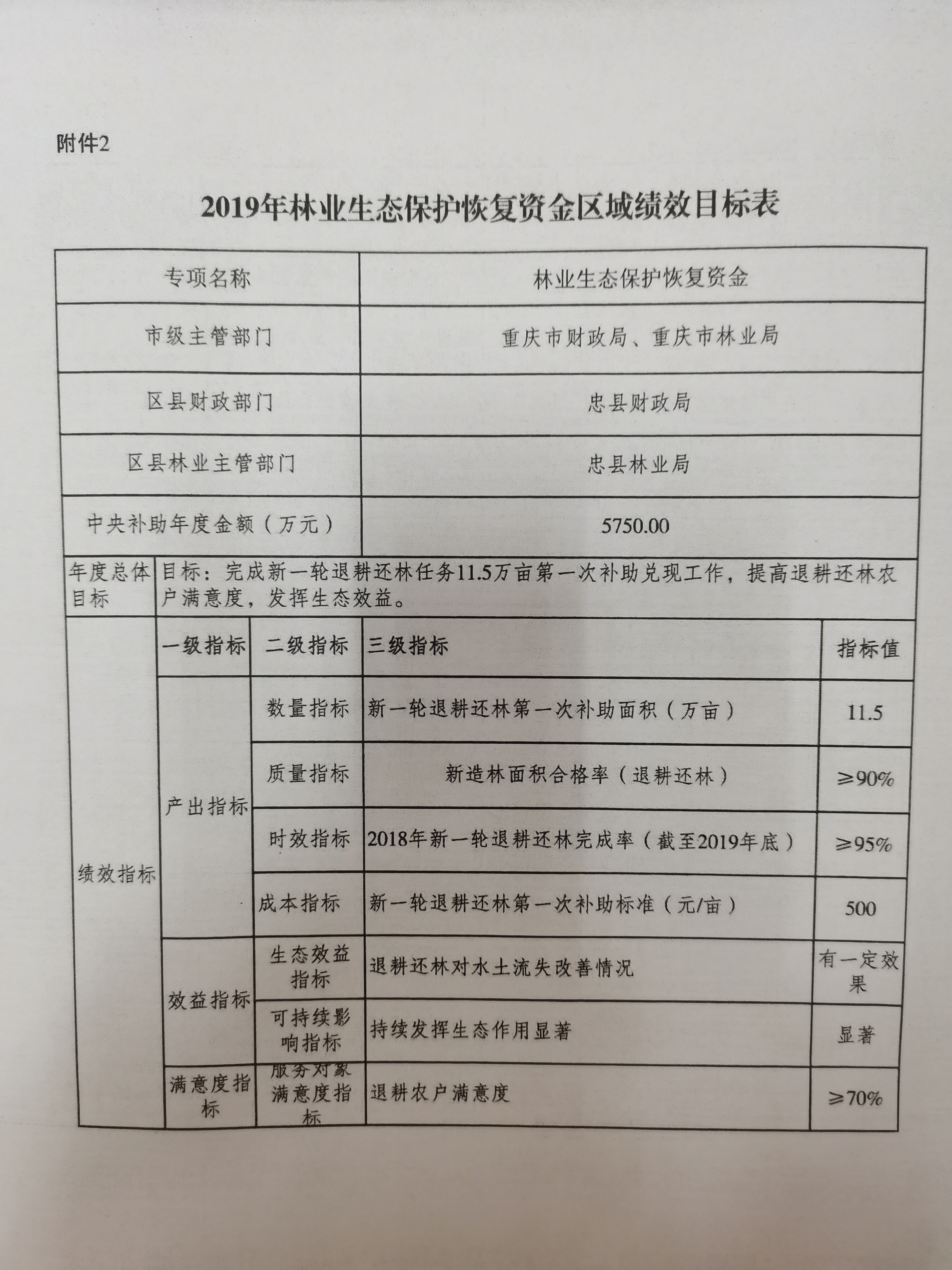 2.2019年林业生态保护恢复资金区树绩效目标表