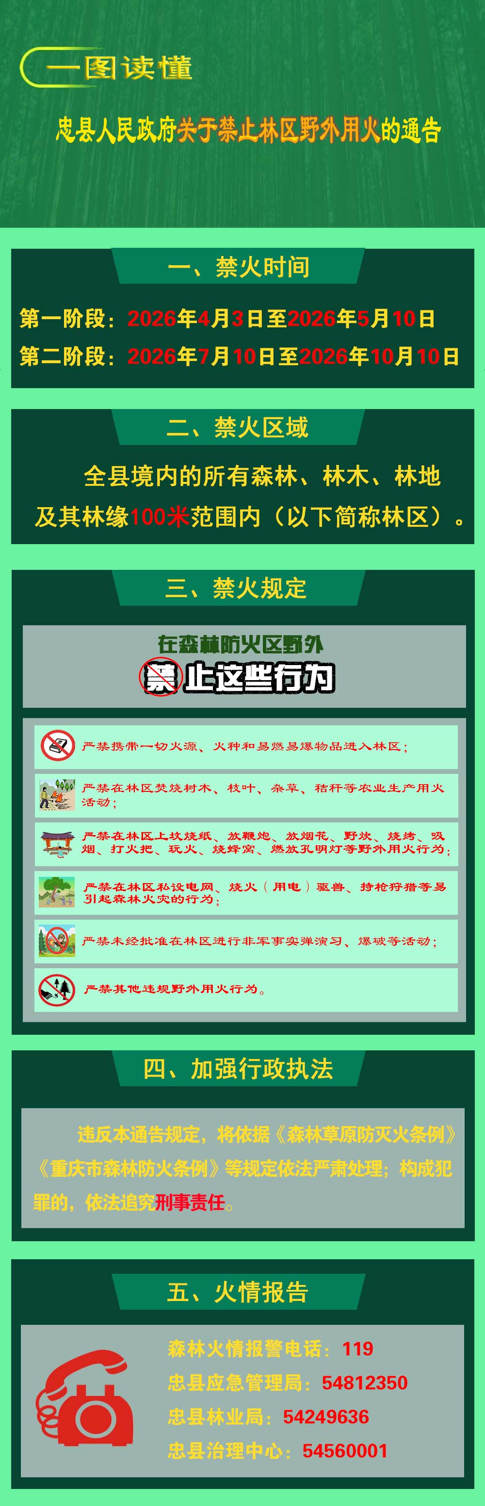 一图读懂《忠县人民政府关于禁止林区野外用火的通告》