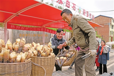 近日,村民在白石镇巴岭村装运竹笋。